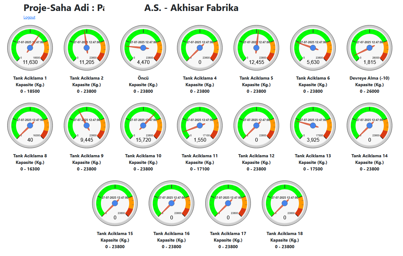 Tanklarınızdaki sıvı seviyelerini ultrasonik sensörlerle ölçüyor, bulut tabanlı bir sunucuya kaydediyor ve kullanıcıların şifreli web erişimi ile anlık ve geçmişe dönük verileri görmesini sağlıyoruz.